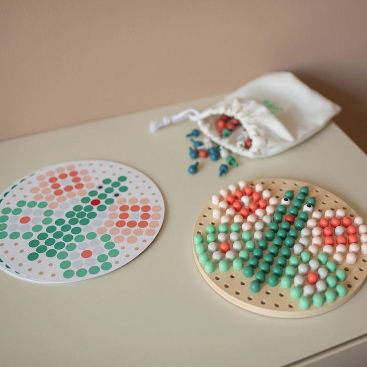 Τόσες πολύχρωμες ξύλινες καρφίτσες! Είναι ο BS Toys – Πίνακας Μωσαϊκό!
