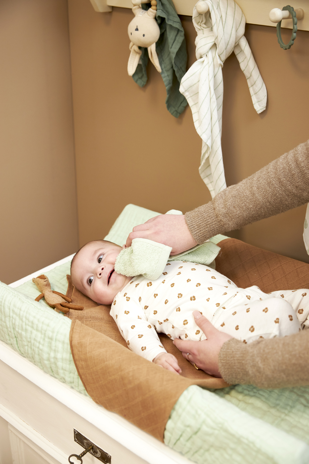 Οι λαβέτες είναι κατασκευασμένες από 100% βαμβακερό ύφασμα που τις καθιστά σούπερ απαλές και φιλικές προς το δέρμα του μωρού. Το υλικό απορροφά επίσης καλά την υγρασία και στεγνώνει γρήγορα.