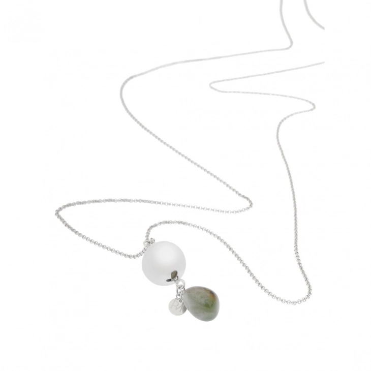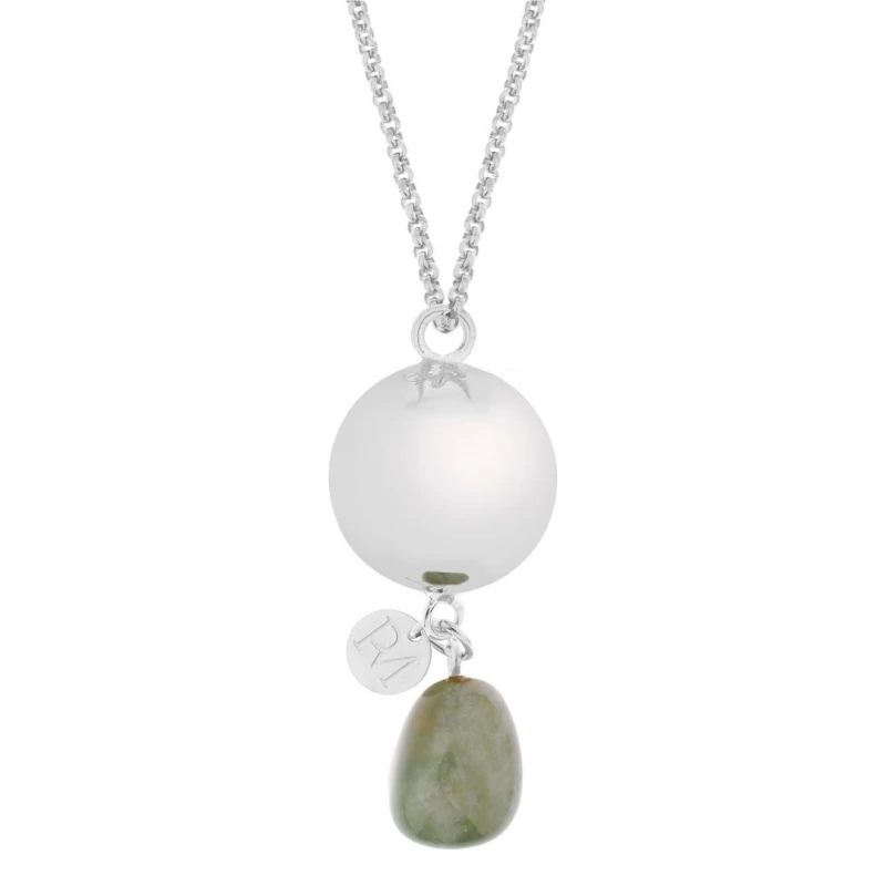 Μενταγιόν Εγκυμοσύνης Ανοξείδωτο Ατσάλι 110εκ. Silver Linn Βρυώδης Αχάτης Proud Mama PM-638
