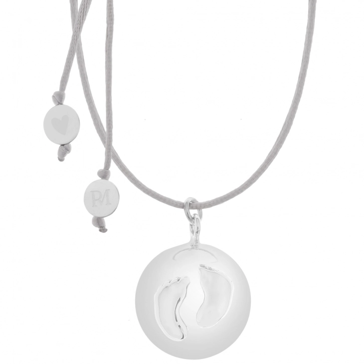 Μενταγιόν Εγκυμοσύνης Επάργυρο-Βαμβακερό Bola Sofie Silver-Grey Πατουσάκια Proud Mama PM-668