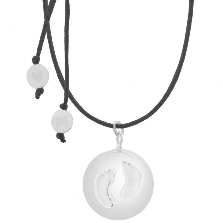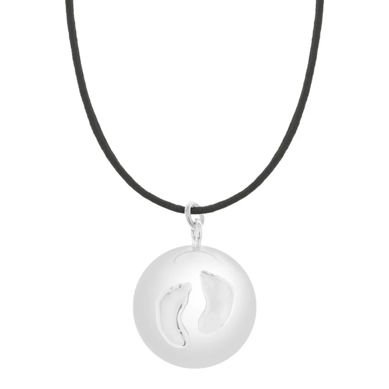 Μενταγιό Εγκυμοσύνης Επάργυρο-Βαμβακερό Bola Sofie Silver Πατουσάκια Proud Mama PM-665