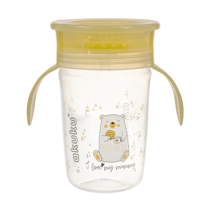 Το Εκπαιδευτικό Ποτηράκι 360° με Χερούλια Yellow από την akuku ήρθε για να μάθει το παιδί σας να πίνει ανεξάρτητα.