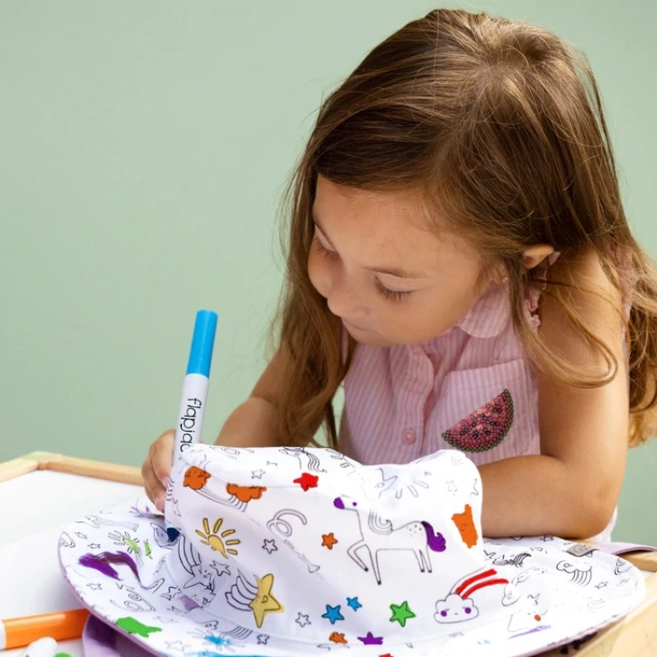 Τα παιδιά θα λατρέψουν να φορούν το καπέλο και να δείχνουν σε όλους το ταλέντο τους! Δεν χρειάζεται να ανησυχείτε αν θα είναι τέλειο το σχέδιο, καθώς οι μαρκαδόροι που περιλαμβάνονται αφαιρούνται με το πλύσιμο, που σημαίνει ότι υπάρχουν ατελείωτες δυνατότητες. Είστε έτοιμοι για άπειρη διασκέδαση;