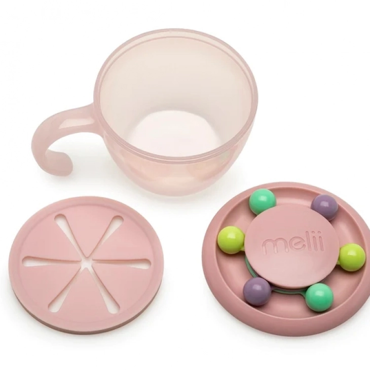 To Snack Container Abacus της Melii είναι δοχείο σνακ που λειτουργεί και ως παιχνίδι και δεν σκορπίζει φαγητό στο δρόμο του παιδιού! Το μικρό σας μπορεί να στριφογυρίζει, να μετρά και να παίζει με τις πολύχρωμες χάντρες που είναι προσαρμοσμένες στο καπάκι του δοχείου. Τα μαλακά και εύκαμπτα πτερύγια κρατάνε το φαγητό στην θέση του και το παιδί επιλέγει πότε θα “τσιμπήσει” το σνακ του. Έτσι ακόμη και αν το παιδί σας αναποδογυρίσει το δοχείο, το περιεχομενό του δεν θα πέσει και.. έχει επιπλέον το καπάκι με τις μπίλιες που το ασφαλίζει για να μπορεί να μπεί άνετα και στην τσάντα σας.