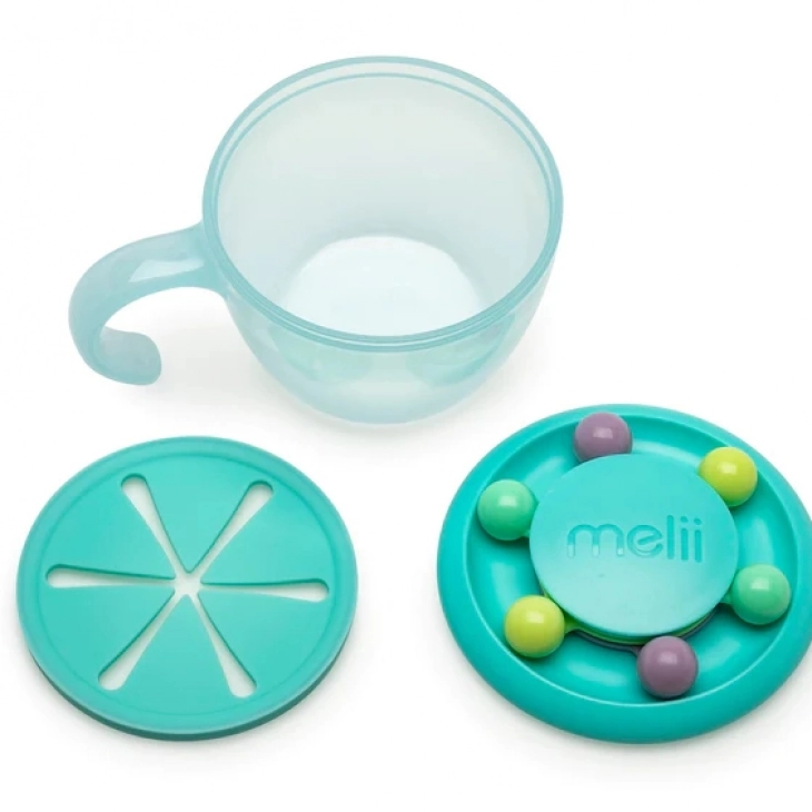 To Snack Container Abacus της Melii είναι δοχείο σνακ που λειτουργεί και ως παιχνίδι και δεν σκορπίζει φαγητό στο δρόμο του παιδιού! Το μικρό σας μπορεί να στριφογυρίζει, να μετρά και να παίζει με τις πολύχρωμες χάντρες που είναι προσαρμοσμένες στο καπάκι του δοχείου. Τα μαλακά και εύκαμπτα πτερύγια κρατάνε το φαγητό στην θέση του και το παιδί επιλέγει πότε θα “τσιμπήσει” το σνακ του. Έτσι ακόμη και αν το παιδί σας αναποδογυρίσει το δοχείο, το περιεχομενό του δεν θα πέσει και.. έχει επιπλέον το καπάκι με τις μπίλιες που το ασφαλίζει για να μπορεί να μπεί άνετα και στην τσάντα σας.