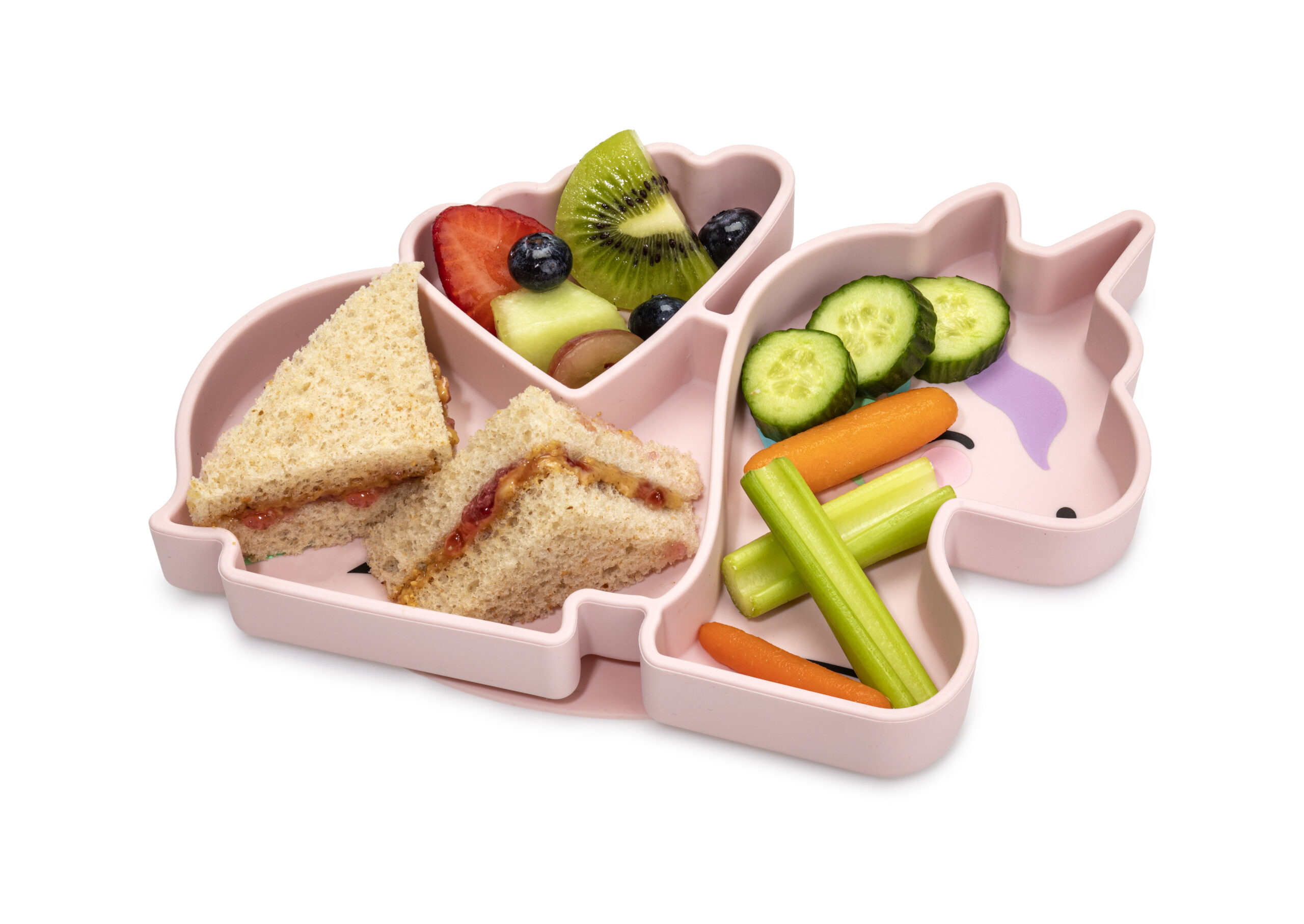 Το Πιάτο σιλικόνης με βεντούζα Unicorn από τη Melii θα γίνει το αγαπημένο του μωρού σας και η ώρα του φαγητού θα γίνει σούπερ διασκεδαστική! Είναι κατασκευασμένο από 100% σιλικόνη που θα βοηθήσει το μωρό στην εκμάθηση της αυτοτροφοδοσίας και στην ανάπτυξη λεπτών κινητικών δεξιοτήτων. Τα διαφορετικά πανέμορφα σχέδια ζώων βοηθούν το μωρό να συνδέσει την ώρα του φαγητού με μία θετική σκέψη κι έτσι όλα γίνονται πιο εύκολα. Λόγω της βεντούζας στο κάτω μέρος το πιατάκι παραμένει στη θέση του, όσο κι αν προσπαθεί ο μικρός μας φίλος να το πετάξει κάτω.