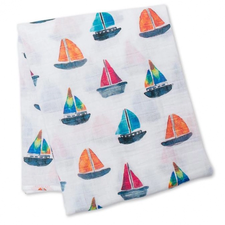 Μουσελίνα Βαμβακερή 120x120εκ. Πολλαπλών Χρήσεων Sailboats Swaddling Lulujo LJ428