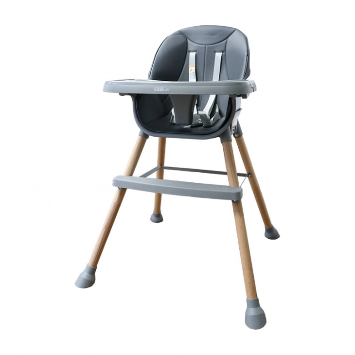 Πολυμορφικό Καρεκλάκι Φαγητού 2 Σε 1 με Ξύλινο Σκελετό & Κάθισμα Από Δερματίνη Γκρι Bbluv Grow B0179