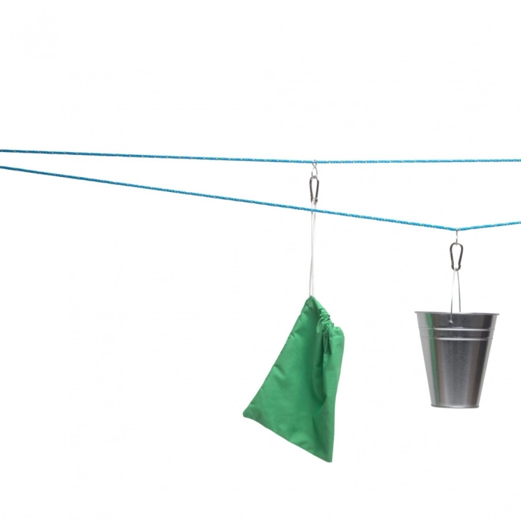Δέστε το σχοινί με τις τροχαλίες και σε δύο πλευρές και τραβήξτε το σχοινί για να κινηθούν ο κουβάς και η τσάντα. Στείλτε ο ένας στον άλλο σημειώσεις ή μικρές εκπλήξεις. Το ιδανικό παιχνίδι για να παίξεις για ώρες με τους φίλους σου.