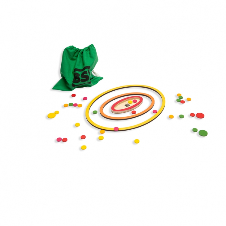 Το παιχνίδι περιλαμβάνει 2 ξύλινα στεφάνια, 1 βάση , 28 ξύλινα κυκλάκια και 1 τσάντα μεταφοράς