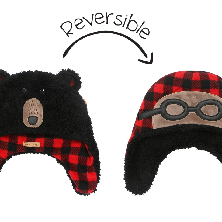 Σκουφάκι 2 Όψεων Fleece-Sherpa 2-4 Έτων Black Bear-Aviator FlapJackKids FJKWS709M