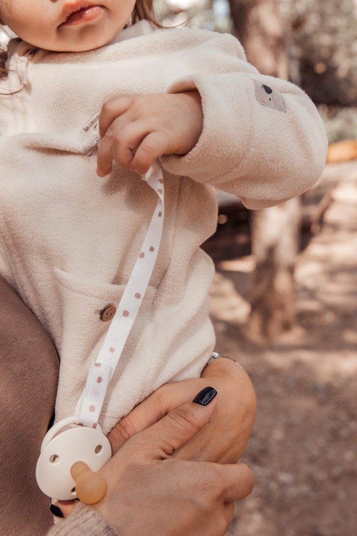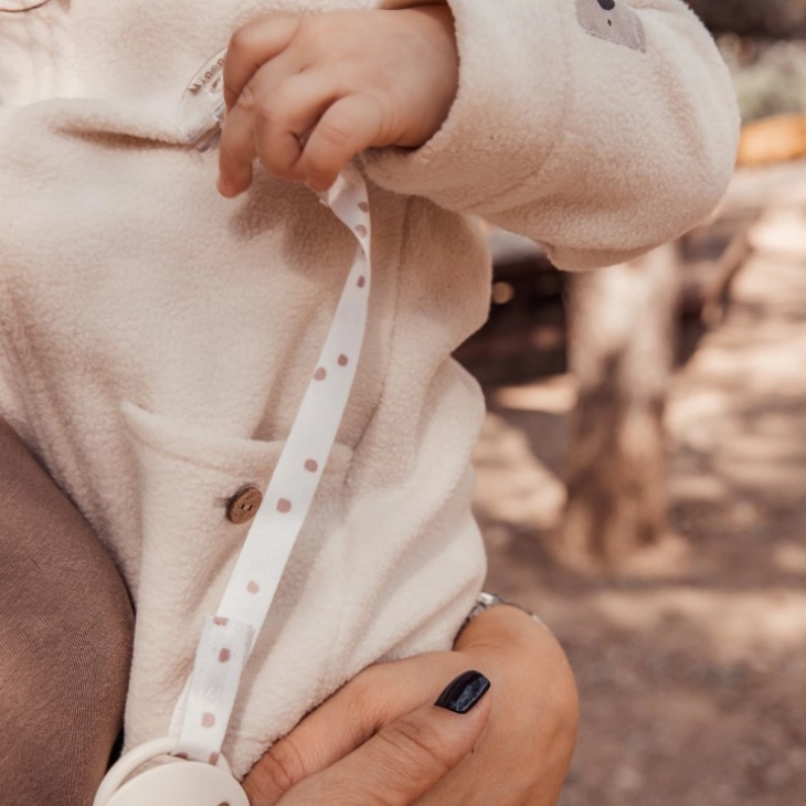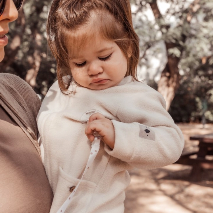Στερεώνεται σταθερά στα ρούχα του μωρού σας και το μέρος που κρατάει την πιπίλα είναι με ασφαλές σταθερό βέλκρο!