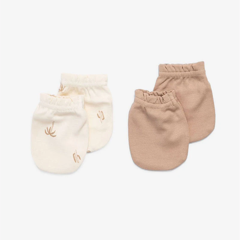 Σετ 2 Ζεύγη Γαντάκια Βαμβακερά Νεογέννητου Palmtrees/Brown Minene 22130005230OS