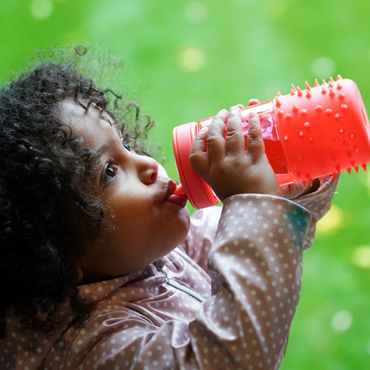 Το Παγούρι Spikey Pink 503 ml είναι το ιδανικό για την αισθητηριακή ανάπτυξη του μικρού σας αφού διαθέτει μαλακές αιχμές σιλικόνης. Η λαβή, το καλαμάκι και το κάτω μέρος είναι κατασκευασμένα από υψηλής ποιότητας σιλικόνη, υπέρ ασφαλή για παιδιά. Το υπόλοιπο κομμάτι του παγουριού είναι από ποιοτικό και μη τοξικό Tritan, το οποίο είναι ανθεκτικό στις οσμές και στη θραύση. Το Spikey είναι για όλες τις ηλικίες και ειδικά για παιδιά που ευχαριστιούνται το παιχνίδι ακόμη και κατά τη διάρκεια που πίνουν το νερό τους. Ένα τέλειο δώρο για τη βόλτα και για την επιστροφή στα θρανία. Το φαρδύ του στόμιο διευκολύνει στο γέμισμα και ενθαρρύνει την ανεξάρτητη σίτιση.