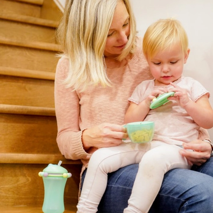 To Snack Container Abacus της Melii είναι δοχείο σνακ που λειτουργεί και ως παιχνίδι και δεν σκορπίζει φαγητό στο δρόμο του παιδιού! Το μικρό σας μπορεί να στριφογυρίζει, να μετρά και να παίζει με τις πολύχρωμες χάντρες που είναι προσαρμοσμένες στο καπάκι του δοχείου. Τα μαλακά και εύκαμπτα πτερύγια κρατάνε το φαγητό στην θέση του και το παιδί επιλέγει πότε θα “τσιμπήσει” το σνακ του. Έτσι ακόμη και αν το παιδί σας αναποδογυρίσει το δοχείο, το περιεχομενό του δεν θα πέσει και.. έχει επιπλέον το καπάκι με τις μπίλιες που το ασφαλίζει για να μπορεί να μπεί άνετα και στην τσάντα σας.