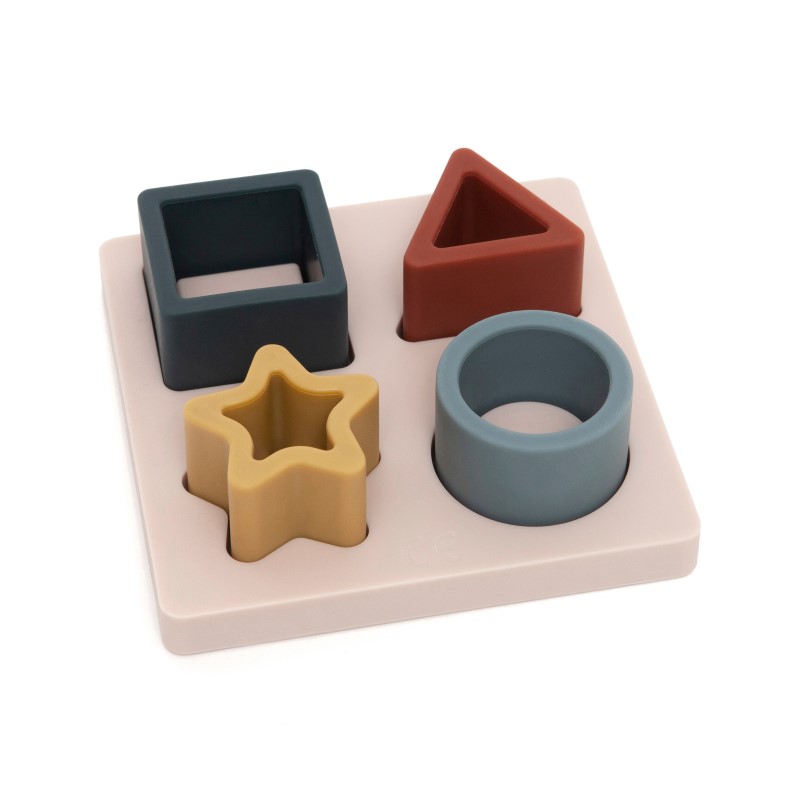 Ένα Παζλ σφηνώματα Σιλικόνης με 4 διαφορετικά σχήματα: τετράγωνο, κύκλο, τρίγωνο και αστέρι.