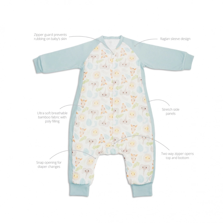 Κατασκευασμένο με δύο στρώσεις από μαλακό ύφασμα μπαμπού που αναπνέει και μανίκια από βαμβάκι και μπαμπού. Με φερμουάρ διπλής κατεύθυνσης και κλιπ στο κάτω μέρος για εύκολη αλλαγή πάνας.