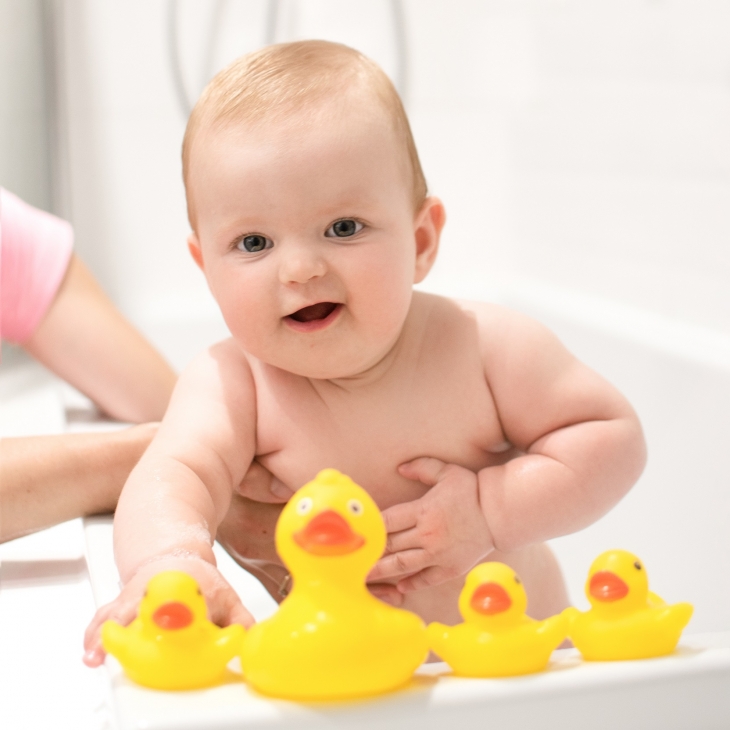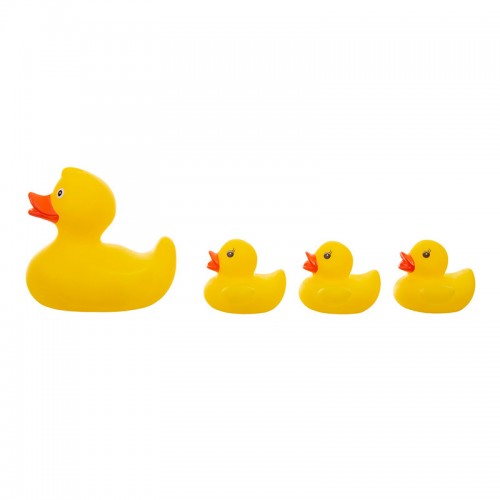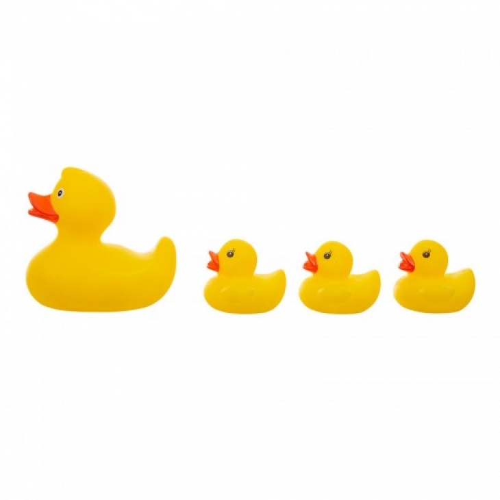 Το σετ αποτελείται από 4 καουτσούκ παιχνίδια: την μαμά πάπια και 3 μικρά παπάκια.