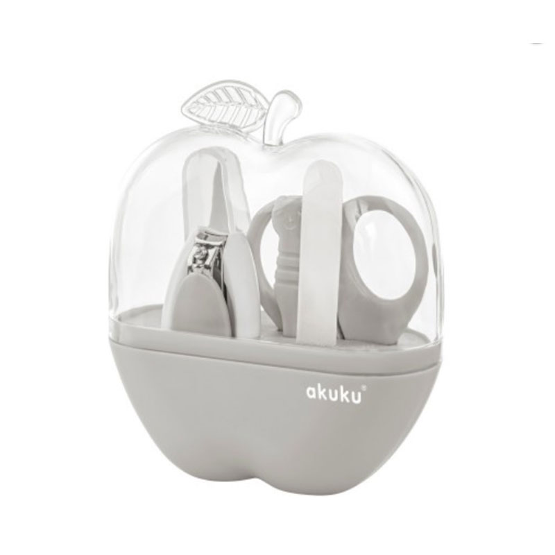 Το Baby Care Kit – Apple Grey της akuku είναι ένα εξαιρετικά χρήσιμο και πρακτικό σετ σε μια μοναδική θήκη σε σχήμα μήλου!