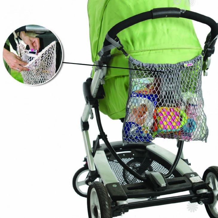 Ένας πολύ πρακτικός τρόπος να μεταφέρεται τα απαραίτητα του μωρού σας (παιχνίδια, μωρομάντηλα, πάνες). Έχει επίσης μία μικρή, ενσωματωμένη, εσωτερική θήκη για να βάζετε το μπουκάλι του μωρού, το κινητό σας, πολύτιμα αντικείμενα κ.α., ώστε να μη κινδυνεύει να χαθεί το περιεχόμενο. Κάθε δίχτυ έρχεται μέσα σε μία πολύ όμορφη διχτυωτή τσάντα μεταφοράς στο ίδιο χρώμα. Το δίχτυ είναι ιδιαίτερα ισχυρό και ανθεκτικό, τοποθετείται εύκολα στον σκελετό του καροτσιού και διευκολύνει πολύ γιατί βλέπετε πάντα τα περιεχόμενά του και εύκολα βρίσκετε πάντα αυτό που χρειάζεστε! Ένας απλός, όμορφος και οικονομικός τρόπος να αυξήσετε τις δυνατότητες αποθήκευσης του καροτσιού σας!