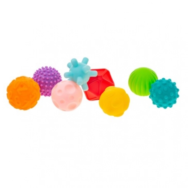Χάρη στην ποικιλία των υφών, κάθε μπαλάκι προσφέρει διαφορετική αίσθηση στα μικρά χεράκι. Τα διαφορετικά σχήματα και και οι προεξοχές τους, μαθαίνουν στα μωρά πώς να ταιριάζει και να ενώνει στοιχεία.