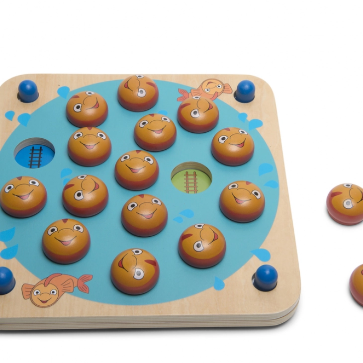 Ένα πρωτότυπο παιχνίδι μνήμης με 8 επίπεδα δυσκολίας και το πιο όμορφο ταμπλό! Μια λίμνη γεμάτη χαρούμενα ψαράκια που πλατσουρίζουν! Θα μπορέσεις να ψαρέψεις τα σωστά; από κάτω τους κρύβονται εικόνες, αριθμοί και χρώματα! Θυμάσαι που είναι τα ίδια; άλλαξε τις κάρτες στην βάση και άλλαξε το παιχνίδι!