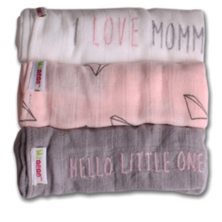 Από τη Minene Σετ από 3 βαμβακερές μουσελίνες που σας έρχονται μέσα σε όμορφη συσκευασία από οργάντζα! (I love mommy)