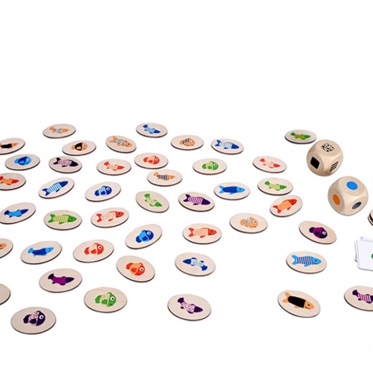 Τα διαφορετικά ζάρια απεικονίζουν διαφορετικά μοτίβα (σχήμα, χρώμα, σχέδιο σώματος ψαριού)