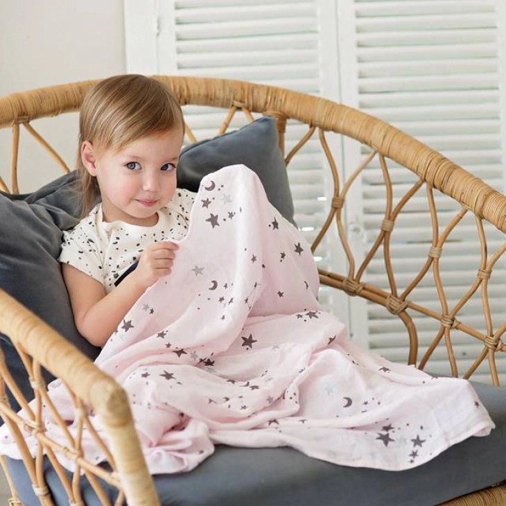 Μεγάλη μουσελίνα σε πολύ όμορφα χρώματα και σχέδια με αστερισμούς . Πολύ μαλακή και απαλή για το ευαίσθητο δερματάκι του μωρού.