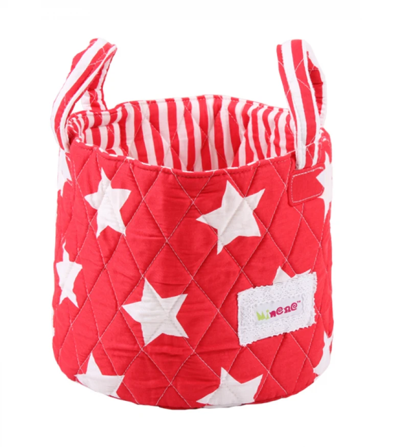 Καλαθάκι Βαμβακερό 22x18εκ. Πολλαπλών Χρήσεων Αστέρια Λευκό-Κόκκινο Minene MN1236