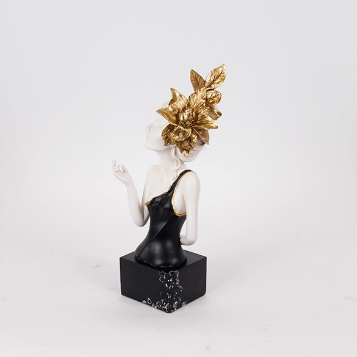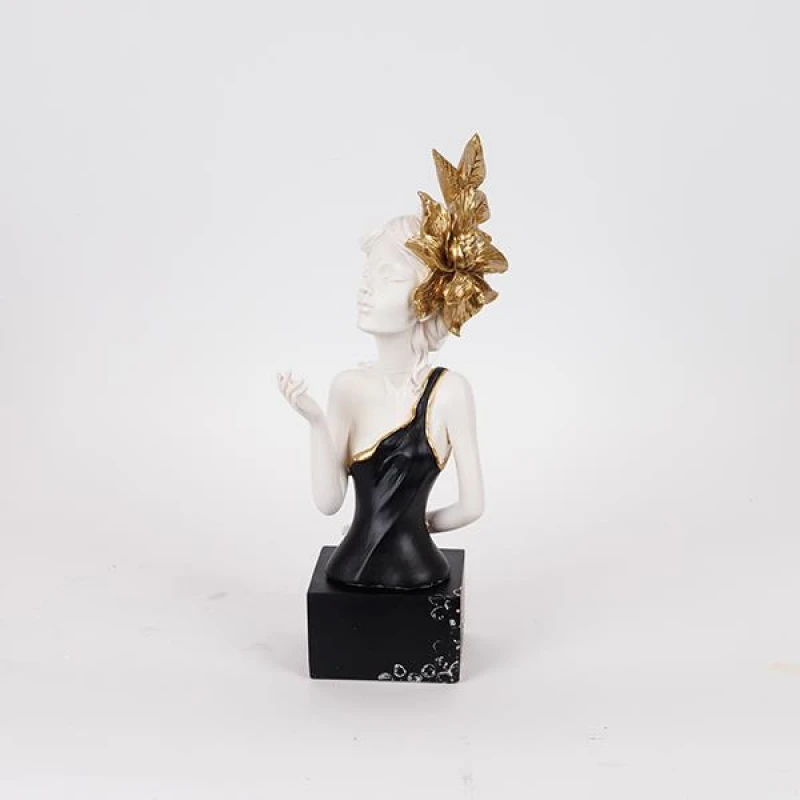 Διακοσμητικό Επιτραπέζιο Γυναίκα Με Λουλούδι Polyresin Λευκό-Χρυσό-Μαύρο 14x13x35εκ. ESTHETI 752-27198