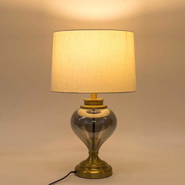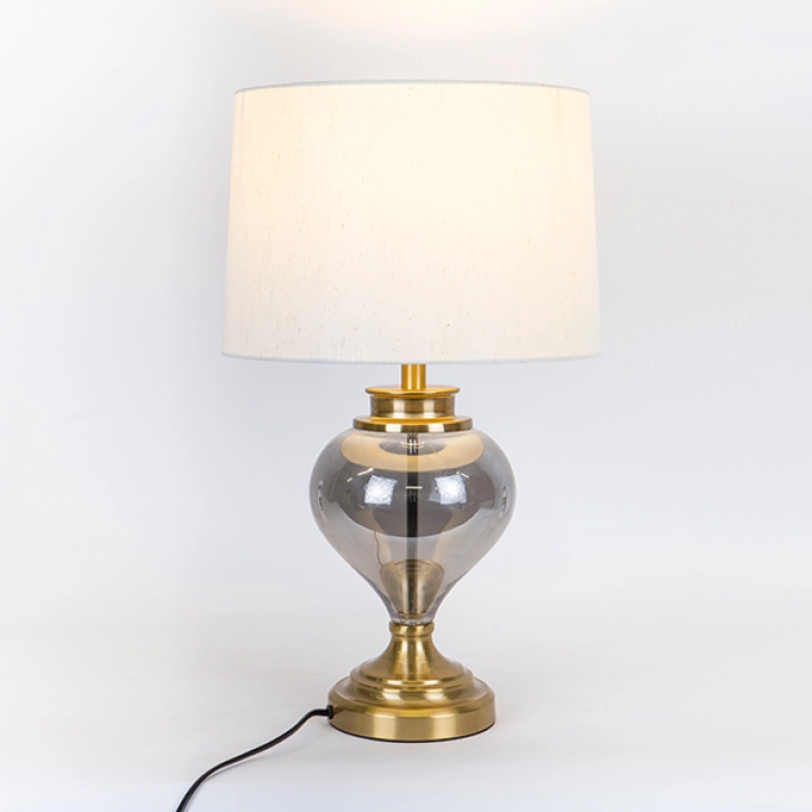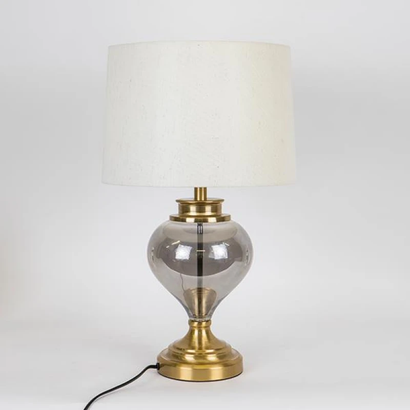 Φωτιστικό επιτραπέζιο μεταλλικό-γυάλινο χρυσό-γκρι με εκρού καπέλο από την ESTHETI - Διαστάσεις: 30,5x50,5εκ.