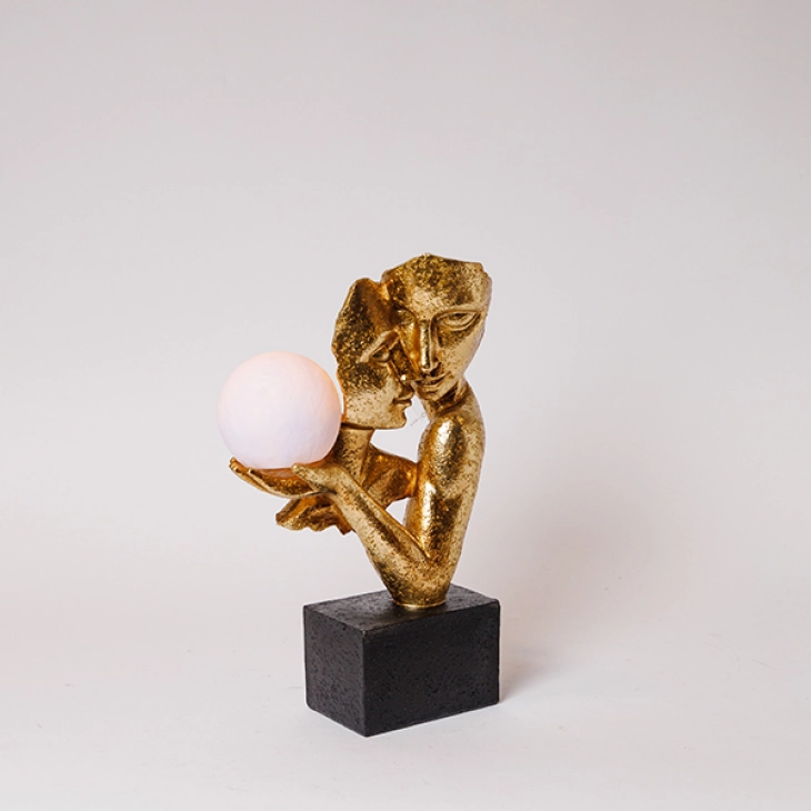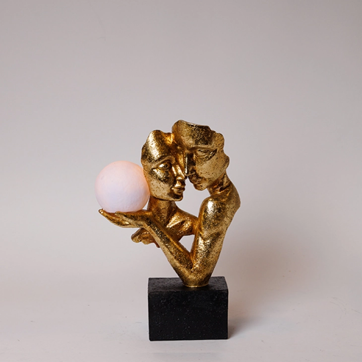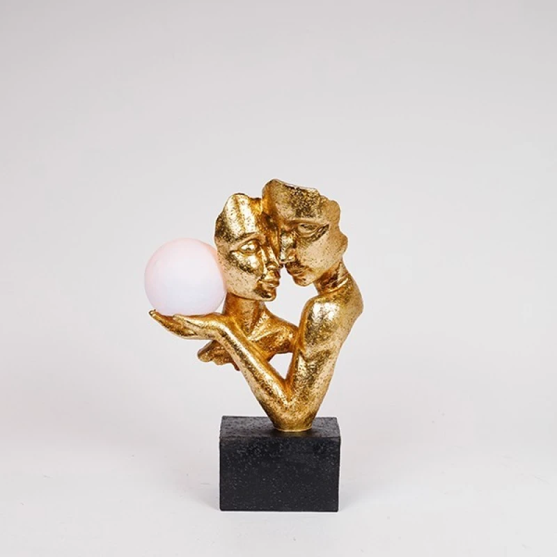 Διακοσμητικό επιτραπέζιο ζευγάρι polyresin σε χρυσό-μαύρο χρώμα με led από την ESTHETI - Διαστάσεις: 21x9,5x31,5εκ.
