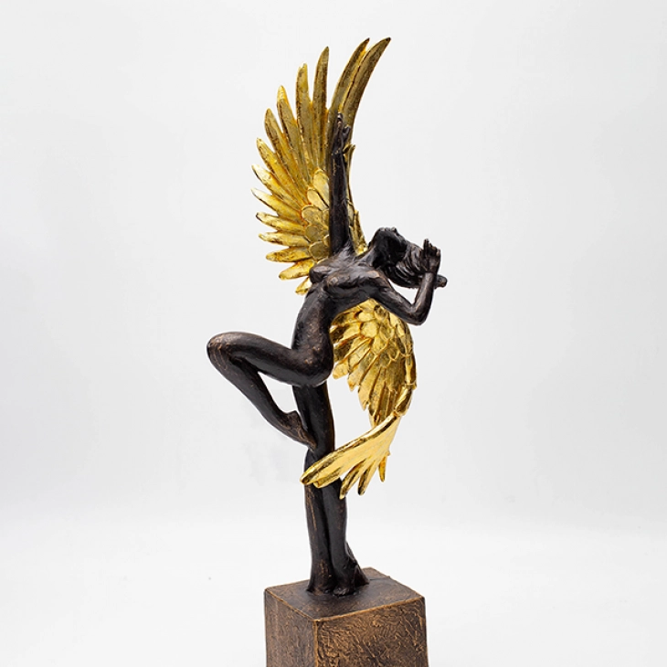 Διακοσμητικό Επιτραπέζιο Γυναίκα Με Φτερά Polyresin Μαύρο-Χρυσό 13,5x7,5x37εκ. ESTHETI 819-00902
