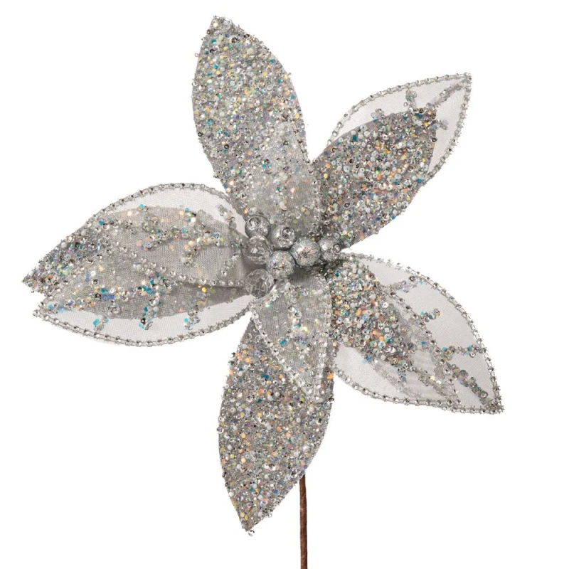 Χριστουγεννιάτικο κλαδί αλεξανδρινό σε λευκό-ασημί χρώμα με glitter από την iliadis - Διαστάσεις: Φ34x41εκ.- Η ελάχιστη ποσότητα αγοράς για αυτό το προϊόν είναι 4τμχ.
