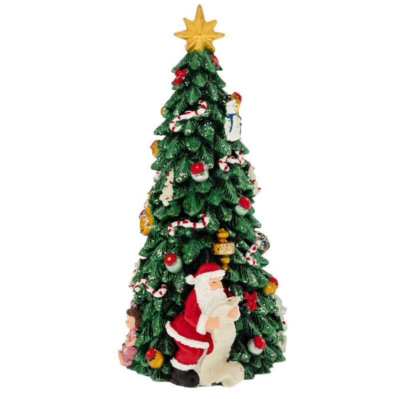 Χριστουγεννιάτικο Διακοσμητικό Δέντρο Polyresin Κουρδιστό Αγ. Βασίλης Με Φως-Μουσική-Κίνηση 9,5x9,5x21εκ. iliadis 90497