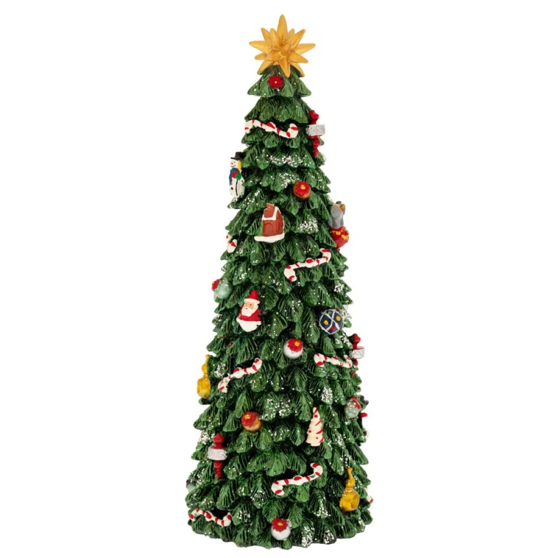 Διακοσμητικό χριστουγεννιάτικο δέντρο polyresin στολισμένο με μουσική, φως και κίνηση από την iliadis - Διαστάσεις: 11x11x30εκ.