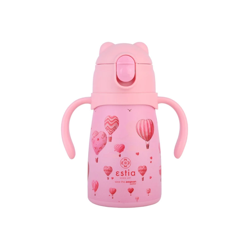 Παιδικό θερμός με εργονομικές λαβές και εύκαμπτο καλαμάκι σιλικόνης και μεγάλο στόμιο, 100% στεγανό με σύστημα κλικ και κλιπ ασφαλείας της σειράς Bubble Bottle από την Estia - Διαστάσεις: 7,3x13x16,5εκ., Χωρητικότητας: 300ml.