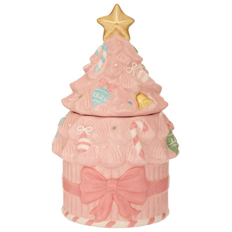 Χριστουγεννιάτικη μπισκοτιέρα κεραμική σε σχήμα δέντρου σε ροζ χρώμα από την iliadis - Διαστάσεις: 16,5x16x27εκ.