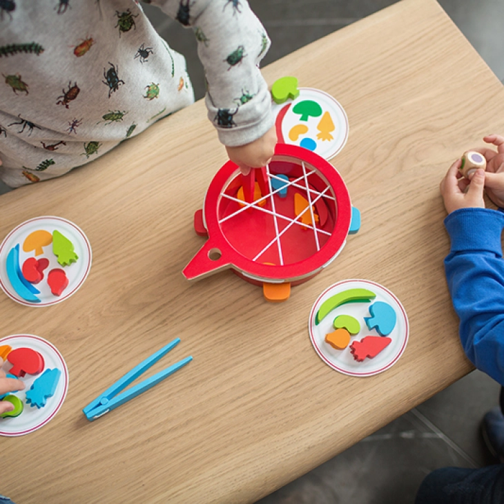 Ρίξε το ζάρι και γύρνα το καπάκι! Χρησιμοποίησε την τσιμπίδα για να μαζέψεις τα λαχανικά. Τοποθέτησέ τα προσεκτικά στο πιάτο σου, χωρίς να πέσουν στο τραπέζι!