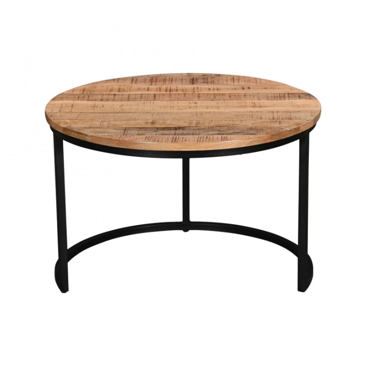 Τραπέζι σαλονιού Frina pakoworld σετ 3τεμ mango ξύλο σε φυσική απόχρωση με πόδι μαύρο μέταλλο