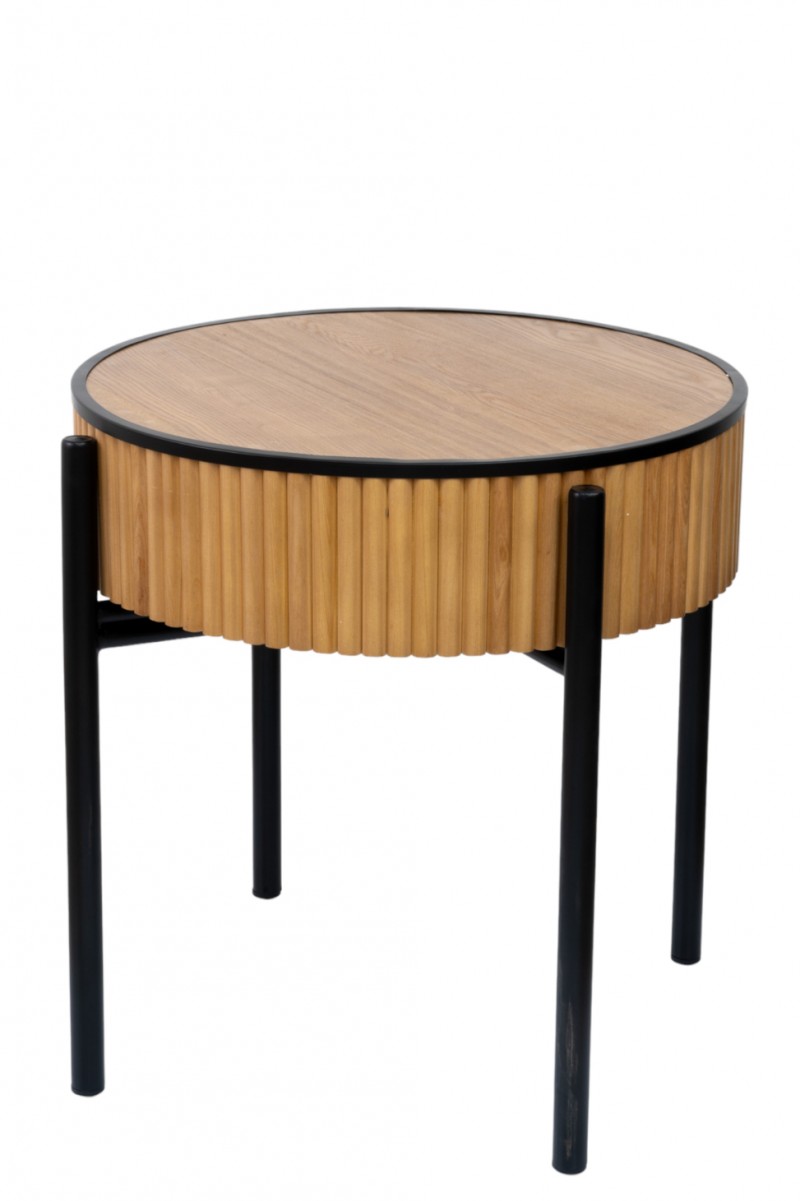 Τραπεζάκι στρογγυλό ξύλινο σε καφέ χρώμα με μαύρα μεταλλικά πόδια από την Zen Collection - Διαστάσεις: 62x59εκ.