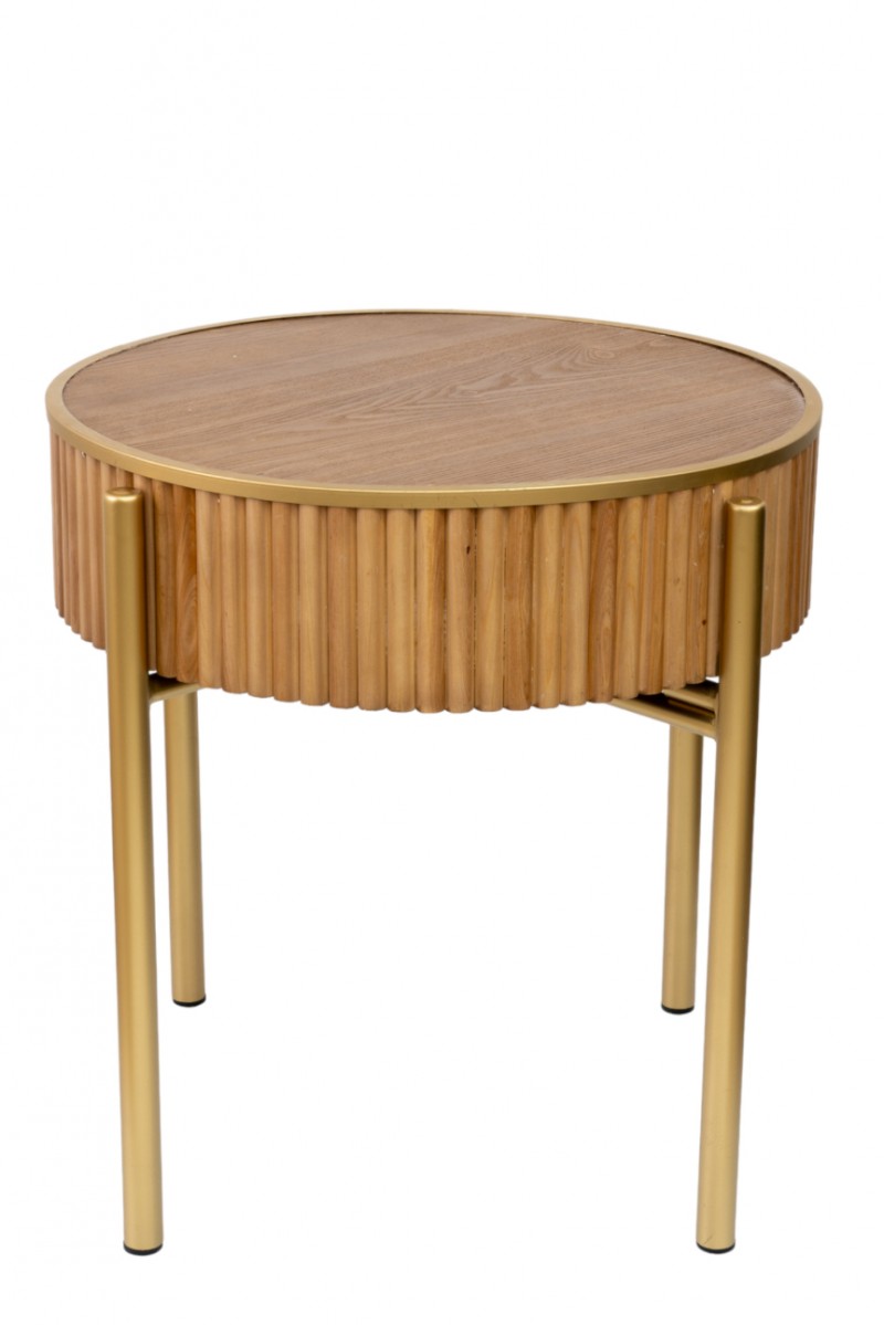Τραπεζάκι στρογγυλό ξύλινο σε καφέ χρώμα με χρυσά μεταλλικά πόδια από την Zen Collection - Διαστάσεις: 62x59εκ.