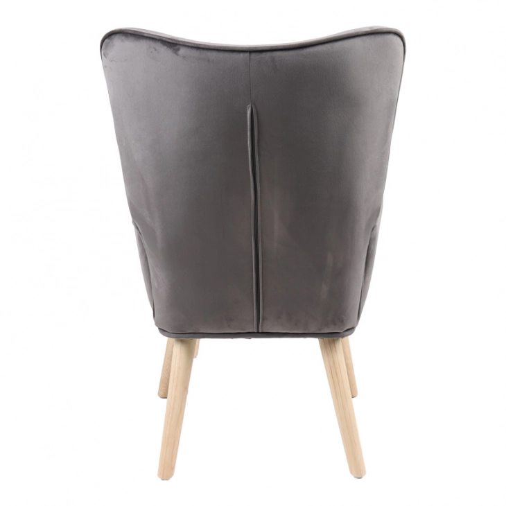 Πολυθρόνα με υποπόδιο Melisia pakoworld γκρι βελούδο και ξύλινο πόδι σε φυσική απόχρωση 59x67x94εκ