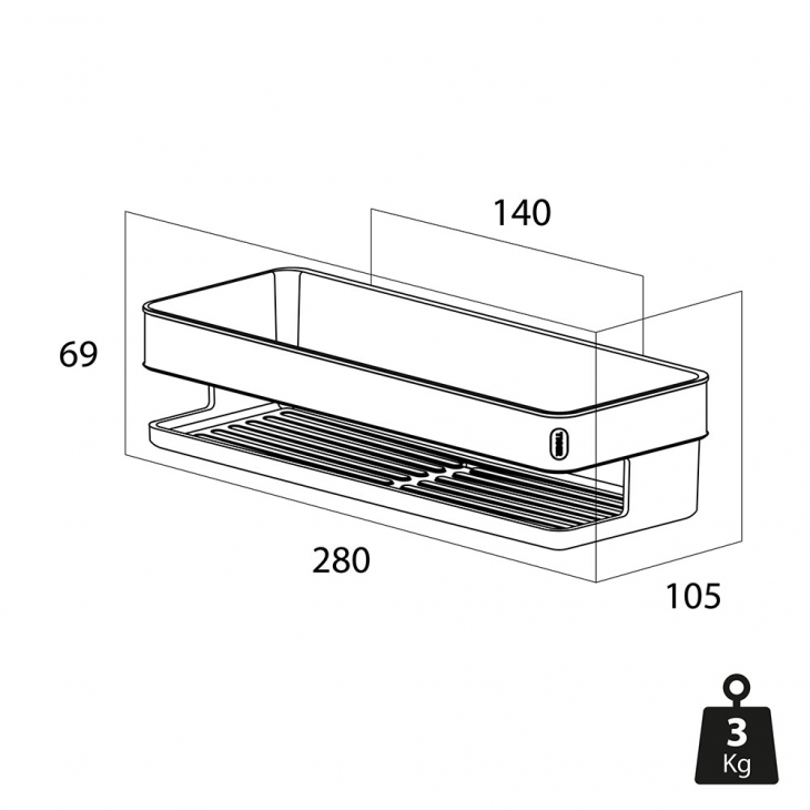 Εύκολο στη χρήση: χάρη στην ψηλή άκρη και την επίπεδη βάση, τα προϊόντα ντους παραμένουν σταθερά στο καλάθι.