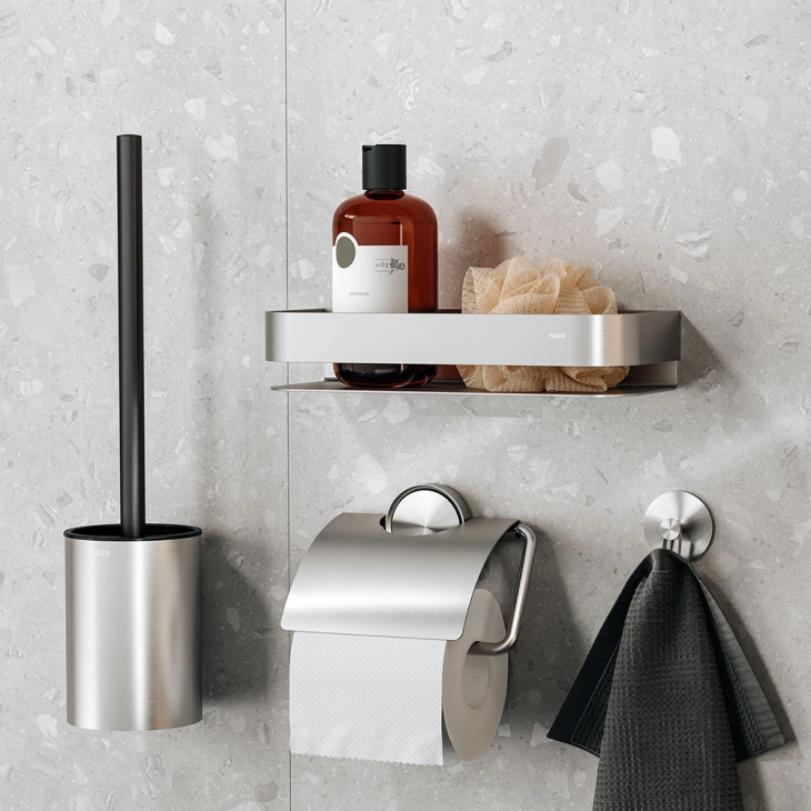 Μοντέρνα απλότητα με μινιμαλιστικό σχεδιασμό. Καλωσορίστε τη βούρτσα και τη θήκη τουαλέτας Tiger Ace! Το βουρτσισμένο χρώμα από ανοξείδωτο ατσάλι σε συνδυασμό με το μαύρο ABS εξασφαλίζει ευρεία εφαρμογή σε οποιοδήποτε μπάνιο. Χάρη στον μηχανισμό ολίσθησης, το κρέμασμα είναι παιδικό παιχνίδι. Και, για τους λάτρεις του μη DIY ανάμεσά μας: μπορείτε εύκολα να συνδέσετε τη ράγα με αυτοκόλλητη ταινία 3M. Η διαχρονική εμφάνιση καθιστά τα αξεσουάρ Tiger Ace κατάλληλα για κάθε στυλ μπάνιου. Το Ace είναι η λύση σας για μια κομψή τουαλέτα.Σχετικά με το προϊόν:Ευκολία χρήσης: χάρη στο σχήμα του εσωτερικού δοχείου, η βούρτσα κεντράρεται τακτοποιημένα στο βραχίονα μετά τη χρήση. Ανθεκτικό στη χρήση: κατασκευασμένο από υλικό ανθεκτικό στη διάβρωση και τις γρατσουνιές. Εύκολος καθαρισμός: η εσωτερική κατσαρόλα αφαιρείται εύκολα για βέλτιστη υγιεινή. Εύκολη εγκατάσταση: με την ισχυρή ταινία 3M, το κρέμασμα είναι εύκολο.