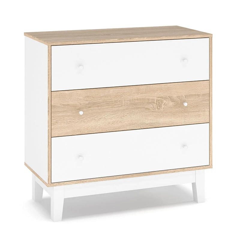 Συρταριέρα Awell pakoworld 3ων συρταριών sonoma-λευκό 90x44x88,5εκ