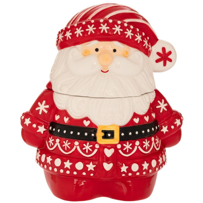 Χριστουγεννιάτικη μπισκοτιέρα κεραμική σε σχήμα Άγιος Βασίλης σε κόκκινο - λευκό χρώμα από την iliadis - Διαστάσεις: 21x16x24εκ.
