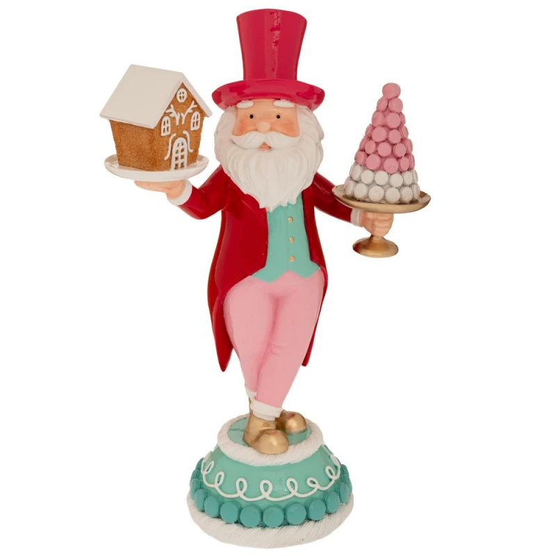 Χριστουγεννιάτικος διακοσμητικός επιτραπέζιος Άγιος Βασίλης, polyresin σε ροζ - σιέλ χρώμα από την iliadis - Διαστάσεις: 20x12x33,5εκ.