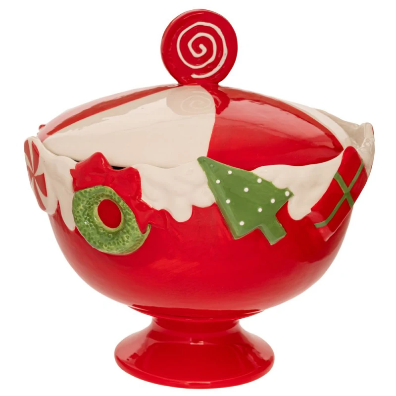 Χριστουγεννιάτικη Μπισκοτιέρα Κεραμική Καραμέλα Λευκή-Κόκκινη 22x22x24εκ. iliadis 90932